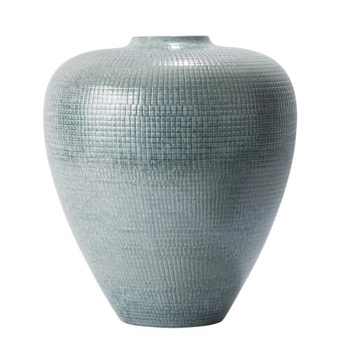 Check Bulbous Vase-Reactive Silver Blue
