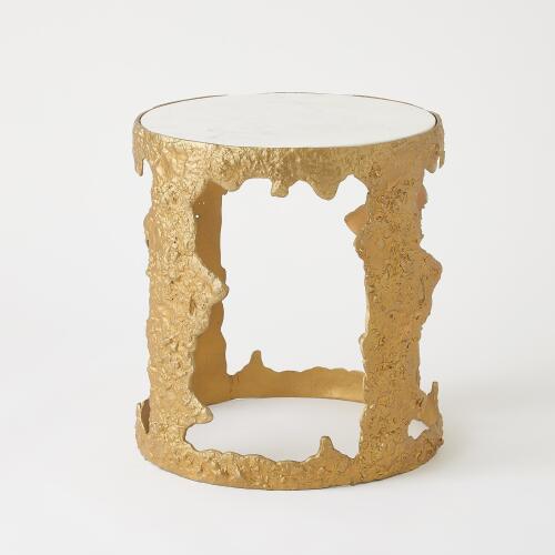 Round Aluminium Table-Brass w/White Marble